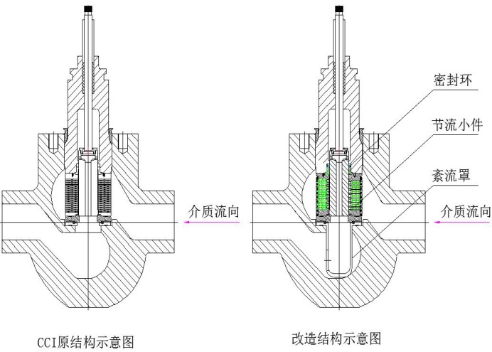 實施過(guò)程:原閥門(men)本體、閥蓋(gài)均不更改(gai),隻需要對(duì)原💃來的閥(fá)内件進行(háng)改造,增加(jiā)閥門節流(liu)等級,采用(yòng)進口密封(feng)環,提高材(cái)質硬度等(deng)。